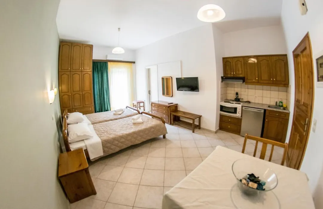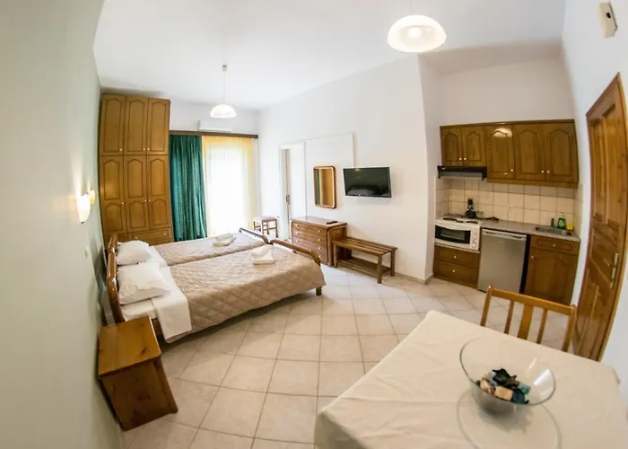 Пляж Сідарі знаходиться за 1.8 км від цього місця, а Мис Драстіс - на відстані приблизно 10 хвилин їзди машиною. Апартаменти розташовані лише за 20 хв ходьби від центру міста. Пляж "Канал кохання" також знаходиться майже за 25 хвилин пішки від Апартаменти Kiones.